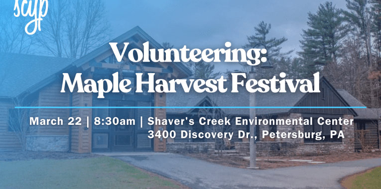 We are seeking 8 eager (and hungry!) volunteers to help out at one of the State College area’s sweetest springtime events, the Maple Harvest Festival and Pancake Breakfast at Shaver’s Creek! Included in this event is an all-you-can-eat pancake breakfast with real maple syrup and locally-sourced sausage (free for all volunteers)!ย